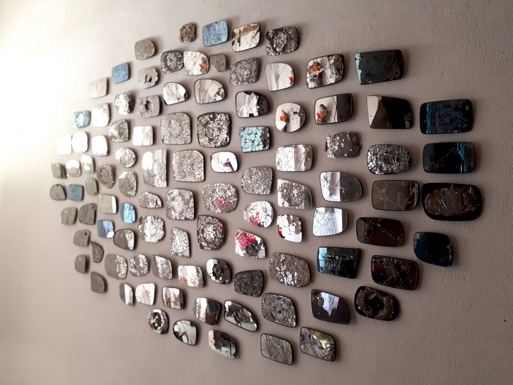 »Zersplitterte Autospiegel«, 90teilig, Autospiegelfragmente, Fundort Florenz, 2000 - 2012